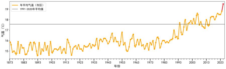 2025年10月,市区月平均气温达23.0℃,为1873年以来最高;10月6日的极端最高气温为35.0℃,创下历史最晚高温纪录。