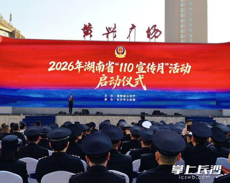 随后,“四十载守护平安 110勇毅前行”主题宣传活动在黄兴路步行街中心广场举行。省政府、省委政法委、省委社工部、省公安厅、省应急厅、省卫健委、湖南消防救援总队及长沙市政府有关领导出席活动。省政府副秘书长徐林军宣布2026年湖南省“110宣传月”活动正式启动。启动仪式后,与会领导一同参观了现场设立的110主题展、警用装备展以及普法互动区。据了解,警察节当天,全省公安机关还同步开展了警营开放日、“110”短视频展播等系列活动,旨在通过与群众面对面交流,增进社会各界对公安工作的理解与支持,营造警民共建平安湖南的浓厚氛围。举报/反馈