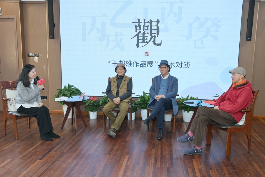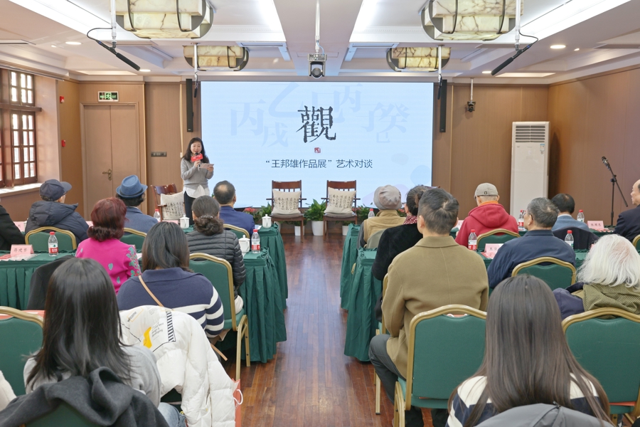近日,“觀——王邦雄作品展”在上海市文史研究馆东楼展厅展出。12月3日下午,本次展览的艺术对谈活动在文史馆菊生堂进行,上海市文联副主席李守白、上海市文艺评论家协会副主席张立行与王邦雄围绕创作理念、传统与当代等话题展开对话,现场多位艺术家与学者参与讨论、各抒己见。